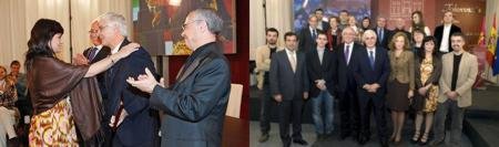 A la izquierda la ganadora recogiendo el trofeo. A la derecha el jurado junto a los ganadores y autoridades.