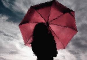 Mi pelo (a veces infranqueable), comienza a inundarse y veo a una señora con un precioso paraguas rojo delante de mí.
