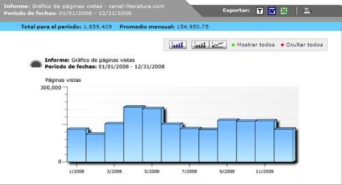 Páginas vistas por meses. 2008 Con 1.859.409 páginas vistas.