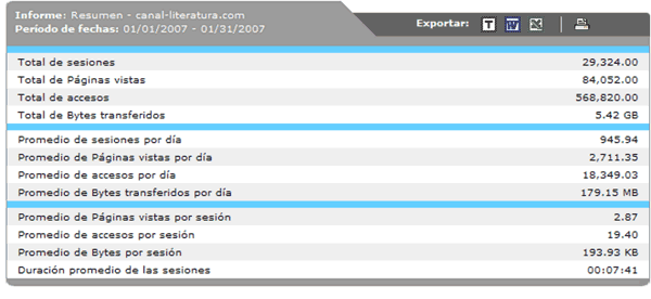 29,324 sesiones solo en el mes de Enero del 2007 | ||||